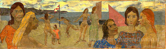 Ti offriamo una riproduzione artigianale su tela dell'opera famosa 'Beach Scene' di Grégoire Michonze, dal Museo delle Riproduzioni.