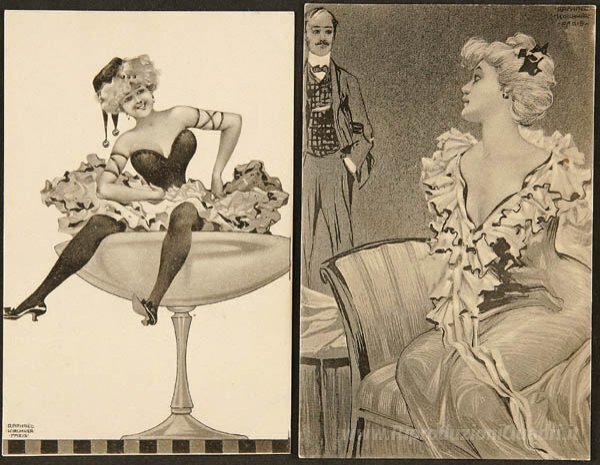 Ti offriamo una riproduzione artigianale su tela dell'opera famosa 'Bellage di Setta' di Raphael Kirchner, dal Museo delle Riproduzioni.