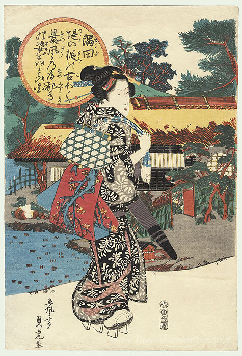 Ti offriamo una riproduzione artigianale su tela dell'opera famosa 'Bellezza Strolling' di Utagawa Sadatora, dal Museo delle Riproduzioni.