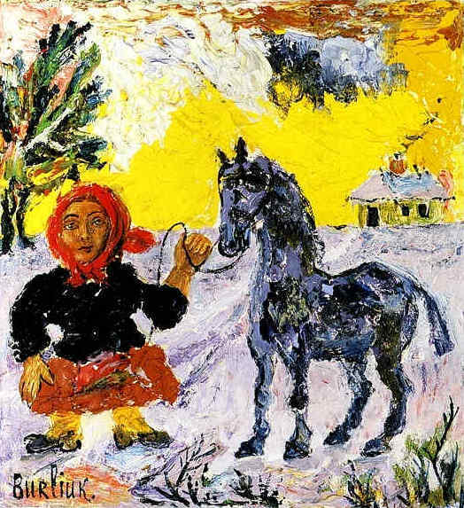 Ti offriamo una riproduzione artigianale su tela dell'opera famosa 'Blue Horse' di David Burliuk, dal Museo delle Riproduzioni.