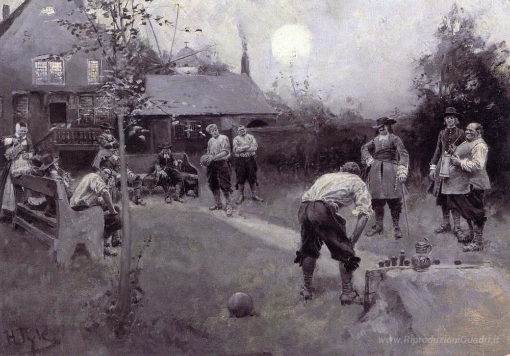 Ti offriamo una riproduzione artigianale su tela dell'opera famosa 'Bowling' di Howard Pyle, dal Museo delle Riproduzioni.