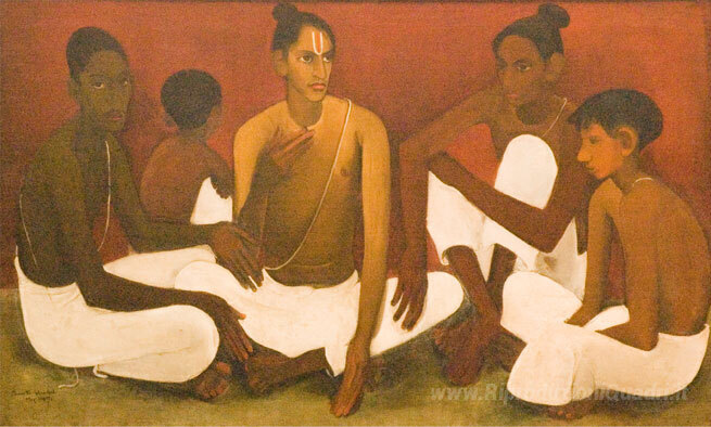 Ti offriamo una riproduzione artigianale su tela dell'opera famosa 'Brahmachari' di Amrita Sher-Gil, dal Museo delle Riproduzioni.