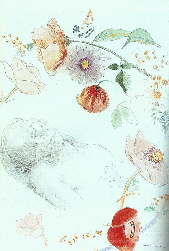Ti offriamo una riproduzione artigianale su tela dell'opera famosa 'Busto di un uomo addormentato in mezzo a fiori' di Odilon Redon, dal Museo delle Riproduzioni.