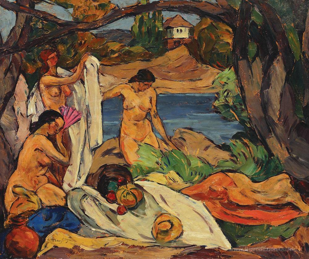 Ti offriamo una riproduzione artigianale su tela dell'opera famosa 'By the Water' di Ion Theodorescu-Sion, dal Museo delle Riproduzioni.