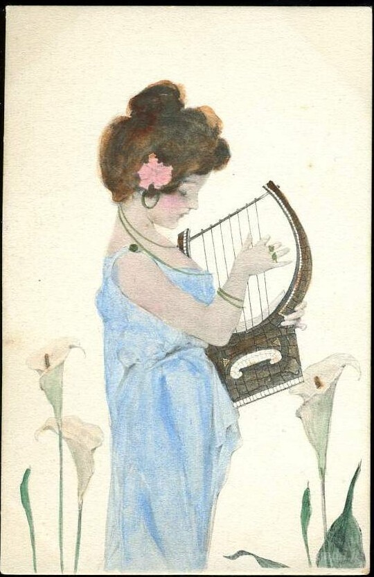 Ti offriamo una riproduzione artigianale su tela dell'opera famosa 'Cameriera di Atene' di Raphael Kirchner, dal Museo delle Riproduzioni.