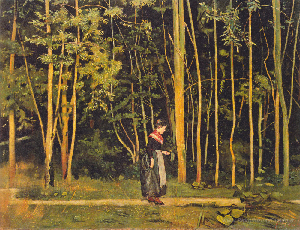 Ti offriamo una riproduzione artigianale su tela dell'opera famosa 'Camminando ai margini della foresta' di Ferdinand Hodler, dal Museo delle Riproduzioni.