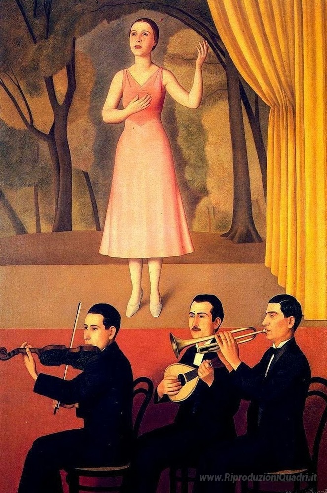 Ti offriamo una riproduzione artigianale su tela dell'opera famosa 'Canzone' di Antonio Donghi, dal Museo delle Riproduzioni.