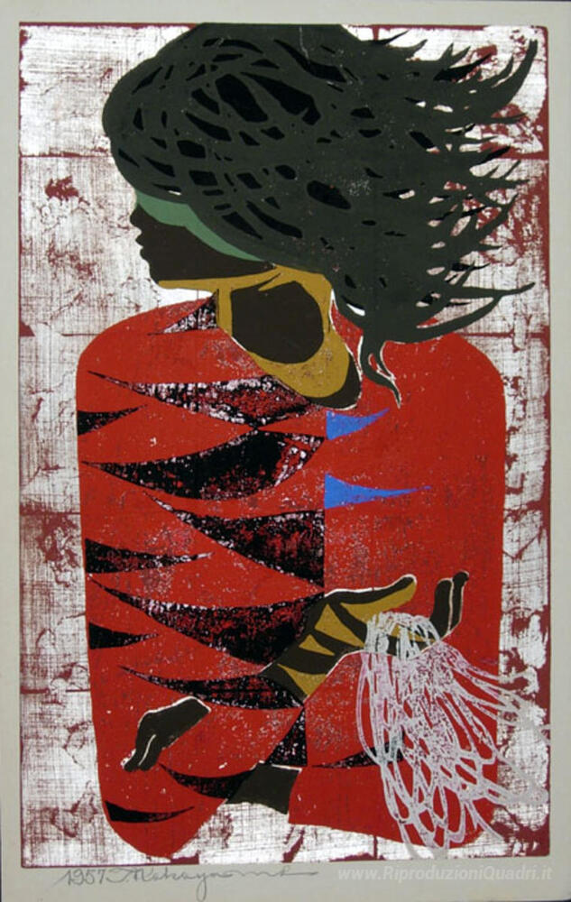 Ti offriamo una riproduzione artigianale su tela dell'opera famosa 'Cappotto rosso' di Tadashi Nakayama, dal Museo delle Riproduzioni.