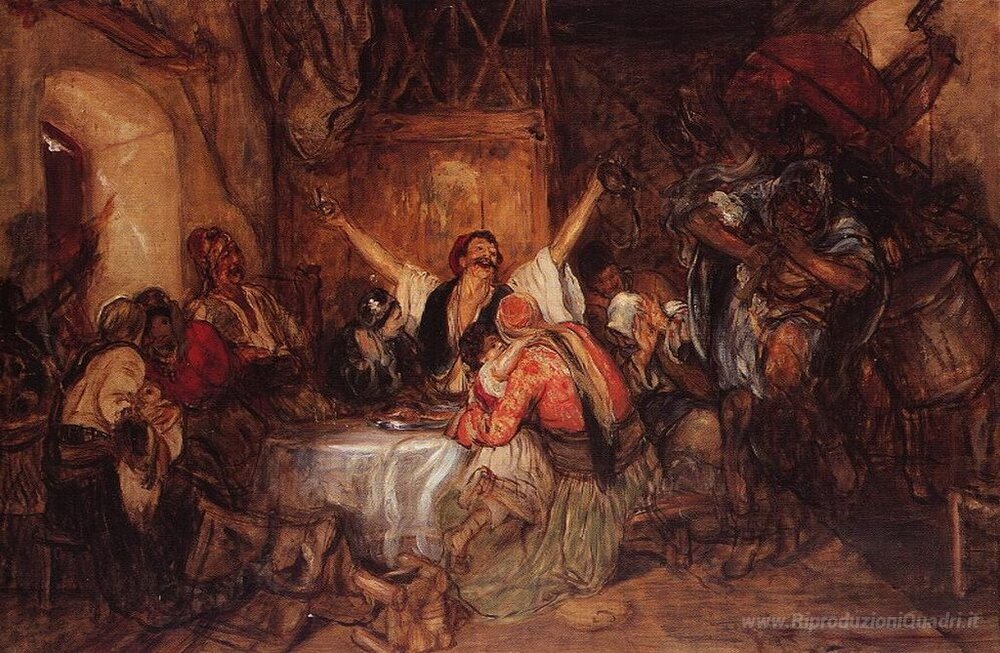 Ti offriamo una riproduzione artigianale su tela dell'opera famosa 'Carnevale di Atene' di Nikolaos Gyzis, dal Museo delle Riproduzioni.