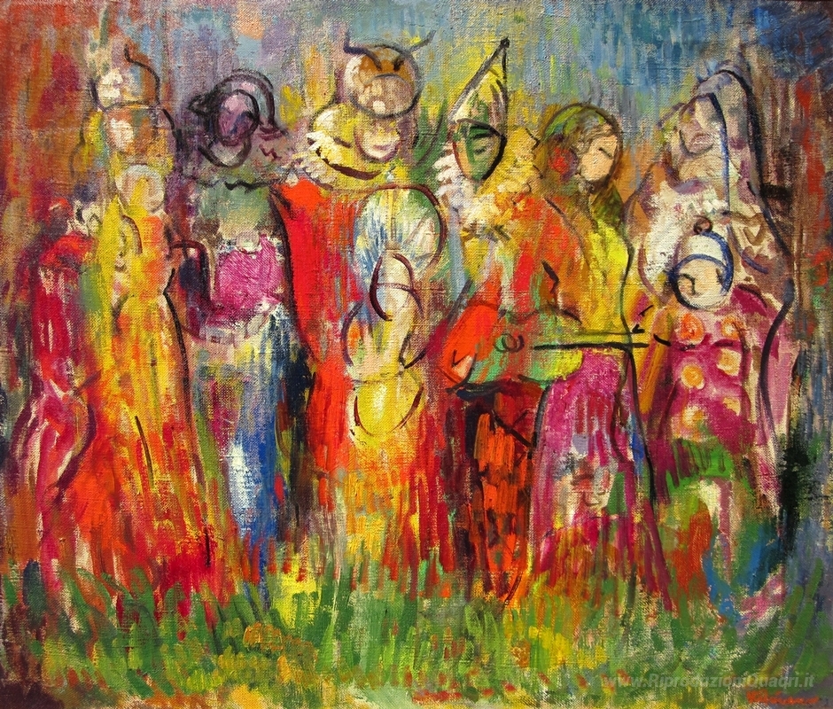 Ti offriamo una riproduzione artigianale su tela dell'opera famosa 'Carnevale' di George Stefanescu-Ramnic , dal Museo delle Riproduzioni.
