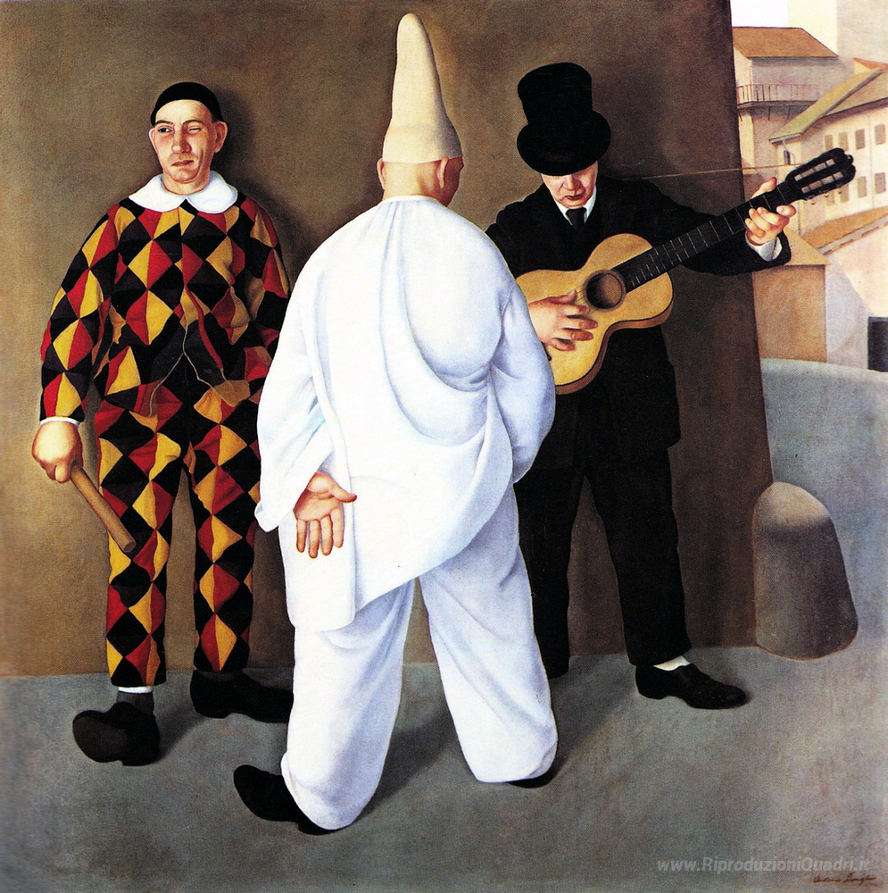 Ti offriamo una riproduzione artigianale su tela dell'opera famosa 'Carnevale' di Antonio Donghi, dal Museo delle Riproduzioni.