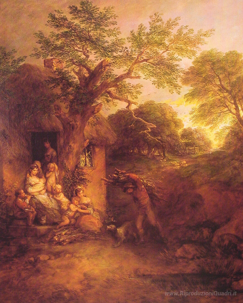 Benvenuti nella nostra selezione esclusiva di dipinti a olio italiani, dove ogni opera racconta una storia unica e raffinata. Oggi vi presentiamo Casa del Boscaiolo, un capolavoro dell'illustre artista britannico Thomas Gainsborough. La sua abilità nel catturare la bellezza naturale e le atmosfere intime ha reso questa opera un esempio straordinario del suo stile inconfondibile, caratterizzato da una sapiente fusione di luce e colore.