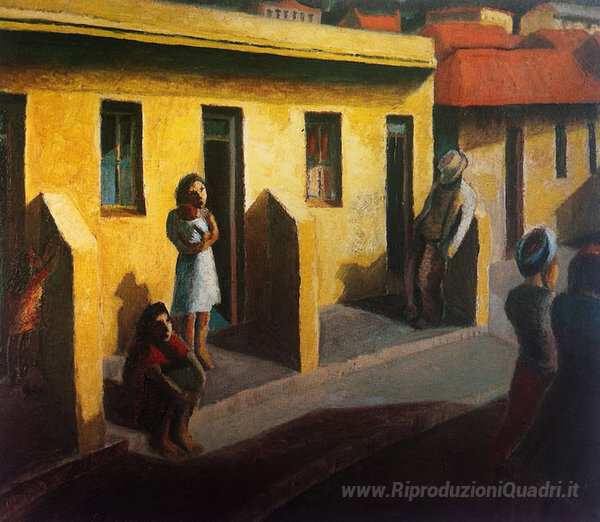 Ti offriamo una riproduzione artigianale su tela dell'opera famosa 'Case gialle: District Six' di Gerard Sekoto, dal Museo delle Riproduzioni.