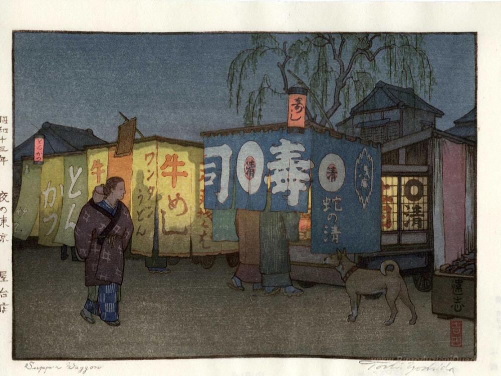 Ti offriamo una riproduzione artigianale su tela dell'opera famosa 'Cena Wagon' di Toshi Yoshida, dal Museo delle Riproduzioni.