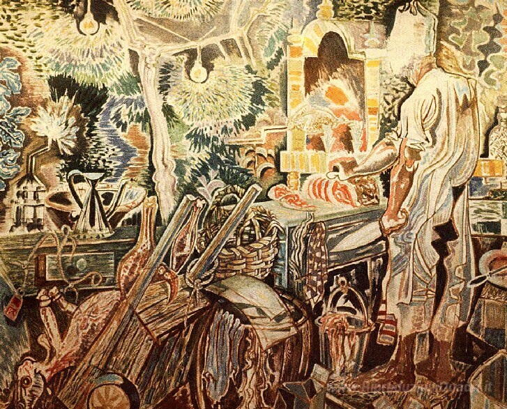 Ti offriamo una riproduzione artigianale su tela dell'opera famosa 'Cerimonia Notte' di Nikos Hadjikyriakos-Ghikas, dal Museo delle Riproduzioni.
