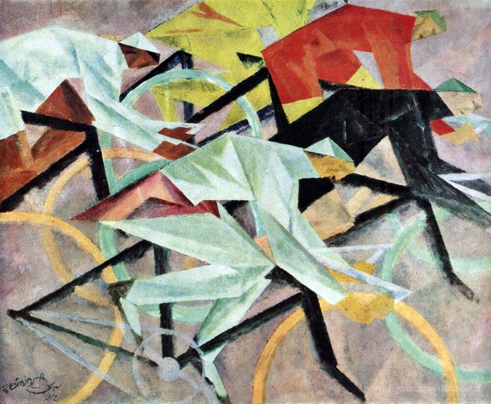 Ti offriamo una riproduzione artigianale su tela dell'opera famosa 'Ciclisti' di Lyonel Feininger, dal Museo delle Riproduzioni.
