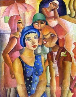 Ti offriamo una riproduzione artigianale su tela dell'opera famosa 'Cinco de Mo?as Guaratinguetá' di Emiliano Di Cavalcanti, dal Museo delle Riproduzioni.