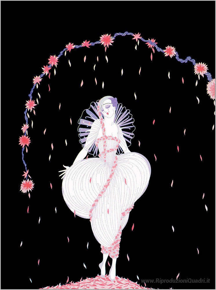 Ti offriamo una riproduzione artigianale su tela dell'opera famosa 'Colombina' di Erte, dal Museo delle Riproduzioni.