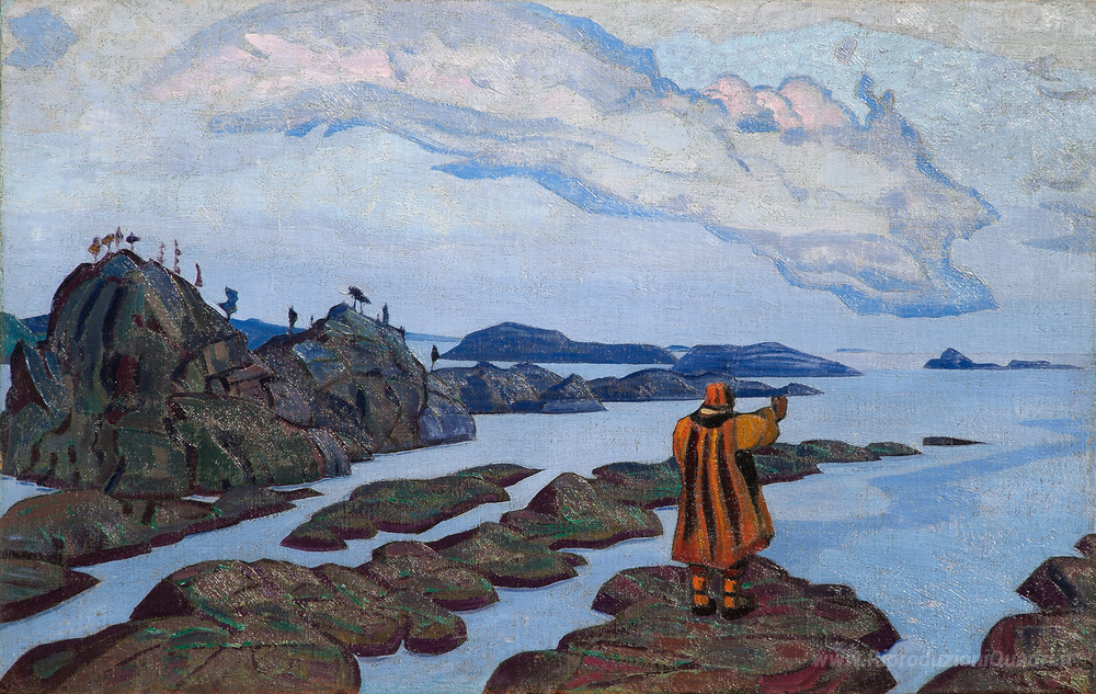 Ti offriamo una riproduzione artigianale su tela dell'opera famosa 'Comando' di Nicholas Roerich, dal Museo delle Riproduzioni.