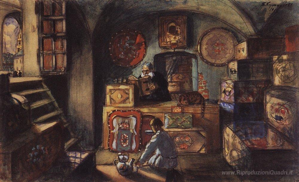 Scoprite l'incanto dell’arte a olio con il capolavoro del talentuoso artista russo Boris Kustodiev, intitolato Commerciante. Questo dipinto non è solo un’opera d’arte, ma una vera e propria rappresentazione della vita e della cultura mercantile, caratterizzata da colori vividi e dettagli meticolosi che catturano l'attenzione e raccontano storie. Kustodiev, noto per il suo stile unico che combina realismo e elementi folkloristici, riesce a trasmettere attraverso questa tela l'essenza di un’epoca e di una società vibrante e in trasformazione.