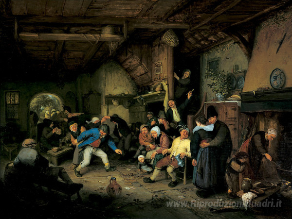 La maestria tecnica di van Ostade si riflette nei dettagli minuziosi dei volti e nei giochi di luce e ombra, che conferiscono profondità e vitalità all'opera. Grazie al suo stile distintivo, riesce a catturare l'essenza della danza e dell'allegria, rendendo Contadini Danza in una taverna un complemento perfetto per qualsiasi ambiente. Questo dipinto non solo arricchirà il vostro spazio, ma creerà anche un'atmosfera accogliente, invitando i vostri ospiti a immergersi in un momento di festa e tradizione.