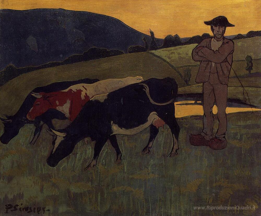 Scoprite l'essenza della tradizione artistica italiana con il capolavoro Contadino con tre corvi di Paul Sérusier. Questo dipinto, realizzato con la tecnica dell'olio su tela, cattura l'attenzione con la sua raffinata composizione e i colori vibranti, tipici dello stile sintetico che Sérusier ha contribuito a definire. L'opera si distingue per l'uso audace della luce e delle forme, creando un'atmosfera che trasmette una profonda connessione con la natura e il quotidiano.