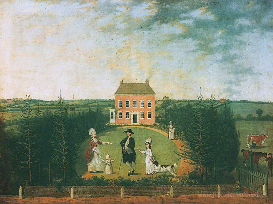 Ti offriamo una riproduzione artigianale su tela dell'opera famosa 'Conversation Piece prima Casa sul Monumento Lane, Edgbaston' di William Williams, dal Museo delle Riproduzioni.