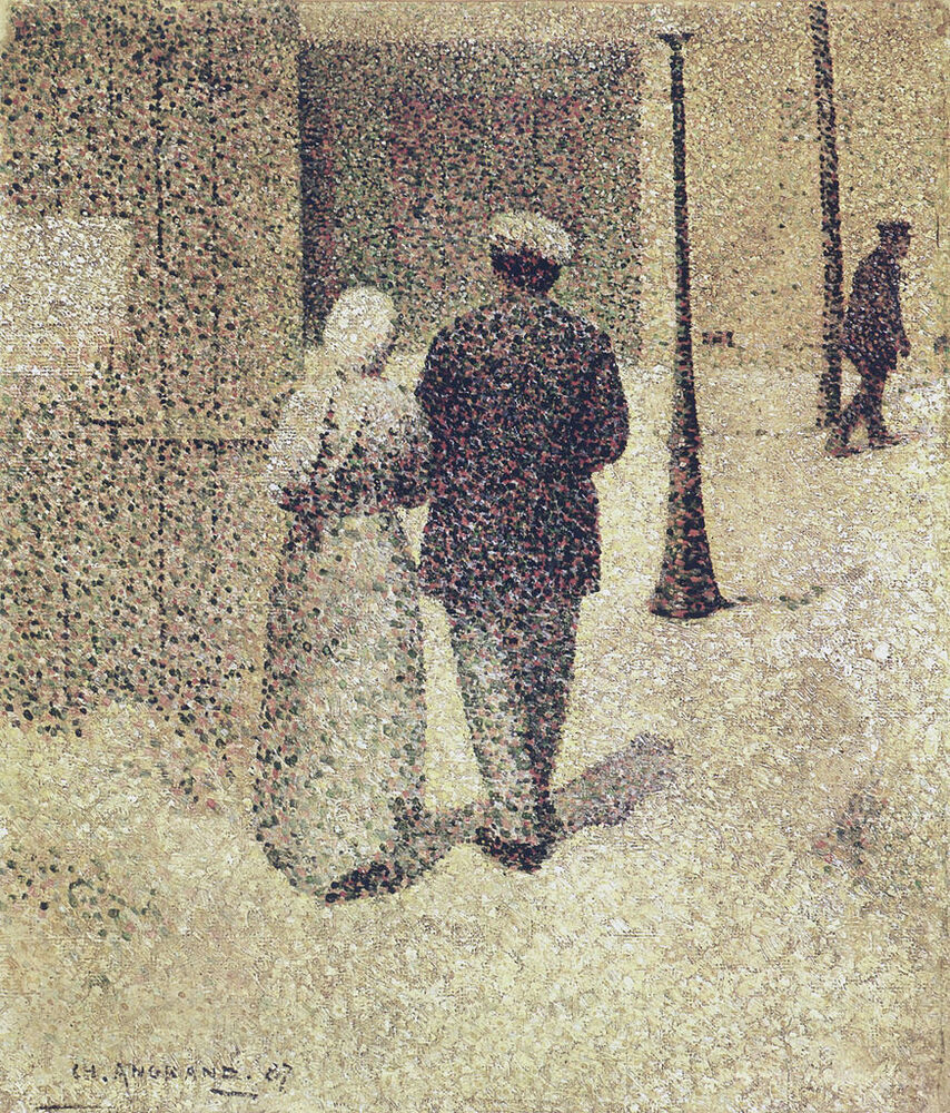 Ti offriamo una riproduzione artigianale su tela dell'opera famosa 'Coppia in strada' di Charles Angrand, dal Museo delle Riproduzioni.