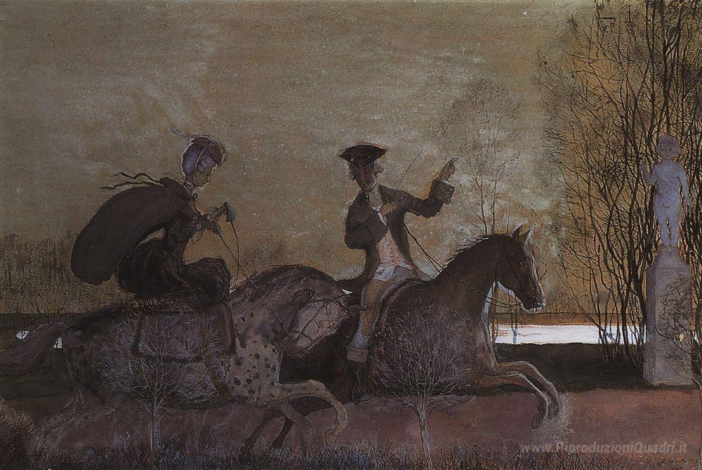 Ti offriamo una riproduzione artigianale su tela dell'opera famosa 'Corse serali' di Konstantin Somov, dal Museo delle Riproduzioni.
