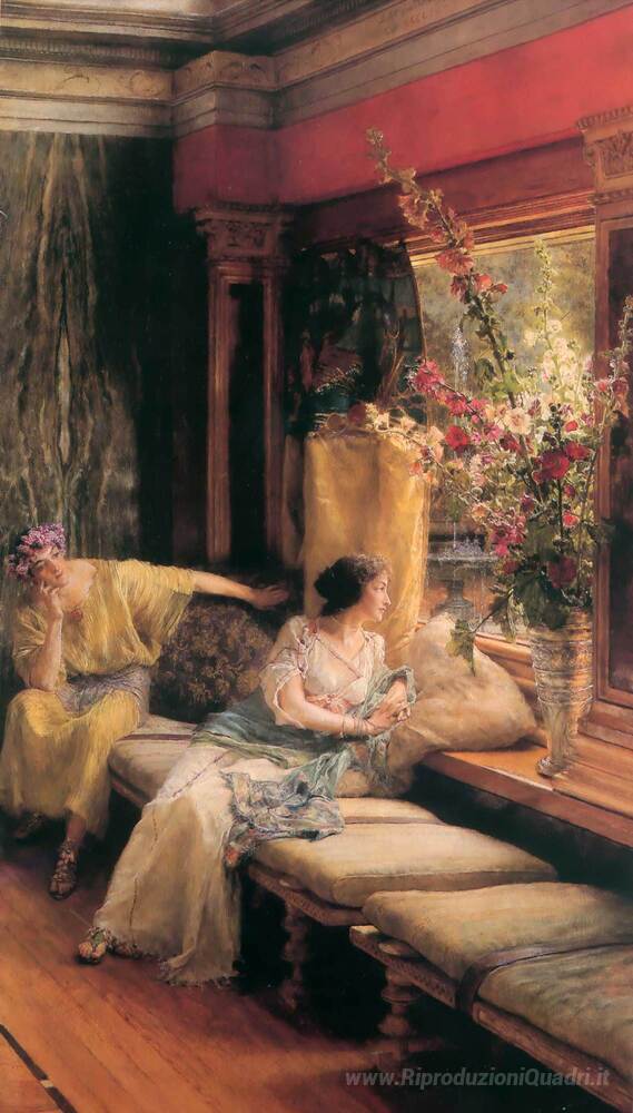 Scoprite l'emozione e l'eleganza del mondo artistico italiano attraverso i dipinti a olio selezionati con cura per il nostro e-commerce. Oggi, vi presentiamo l'opera Corteggiamento Vain del rinomato artista britannico di origini olandesi, Sir Lawrence Alma-Tadema. Celebrato per la sua capacità di trasportare lo spettatore in atmosfere antiche con una lucida maestria, Alma-Tadema è noto per il suo stile distintivo, caratterizzato dall'uso magistrale della luce e dal realismo nei dettagli.