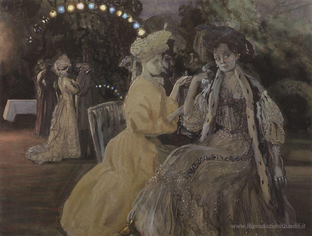 Ti offriamo una riproduzione artigianale su tela dell'opera famosa 'Cortigiane' di Konstantin Somov, dal Museo delle Riproduzioni.
