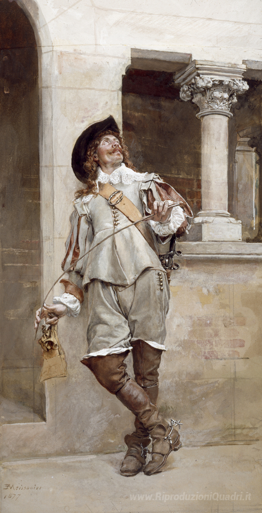 La tecnica pittorica di Meissonier è caratterizzata da una sapiente combinazione di precisione e libertà espressiva, che consente al fruitore di immergersi completamente nell'atmosfera della scena rappresentata. Questo dipinto non è solo un pezzo d'arte; è un complemento ideale per ogni spazio, capace di elevare l'ambiente domestico o professionale e di invitare alla riflessione e all'ispirazione. Scegliere di adornare il proprio spazio con un'opera come "Cortile di studio dell'artista" significa arricchire la propria vita con la bellezza e la cultura senza tempo.