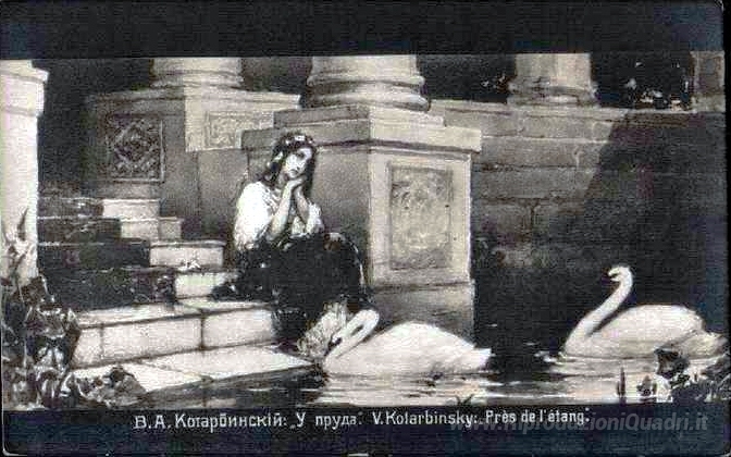 Ti offriamo una riproduzione artigianale su tela dell'opera famosa 'Dallo stagno' di Wilhelm Kotarbinski, dal Museo delle Riproduzioni.