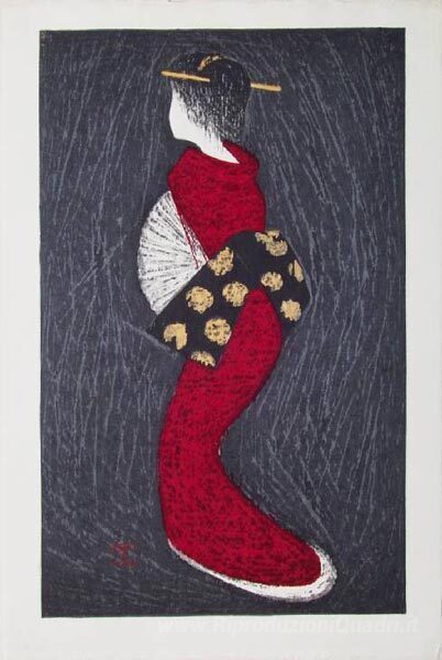 Ti offriamo una riproduzione artigianale su tela dell'opera famosa 'Danza Figura (Eshima)' di Kaoru Kawano, dal Museo delle Riproduzioni.