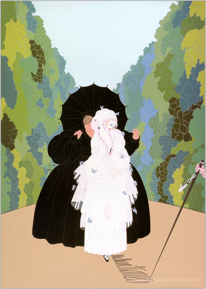 Scopri l'incanto di Debuttante, un'opera magistrale dell'artista Erté, che rappresenta una fusione perfetta tra arte e stile. Con una carriera che spazia dal design alla pittura, Erté, icona del movimento Art Déco, traduce in questo dipinto la sua visione opulenta e raffinata. La figura femminile, espressione di grazia e sofisticatezza, si staglia in un'atmosfera sognante, evocando emozioni profonde e una bellezza senza tempo.