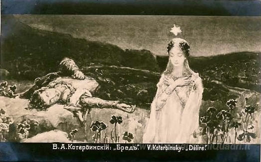 Ti offriamo una riproduzione artigianale su tela dell'opera famosa 'Delirio' di Wilhelm Kotarbinski, dal Museo delle Riproduzioni.