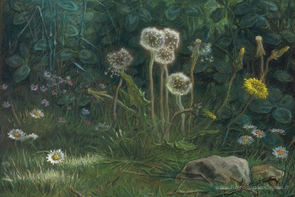 Ti offriamo una riproduzione artigianale su tela dell'opera famosa 'Denti di leone' di Jean-Francois Millet, dal Museo delle Riproduzioni.