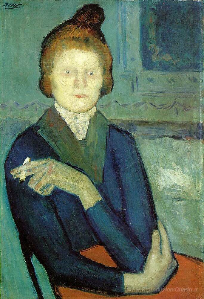 Ti offriamo una riproduzione artigianale su tela dell'opera famosa 'Donna con la sigaretta' di Pablo Picasso, dal Museo delle Riproduzioni.