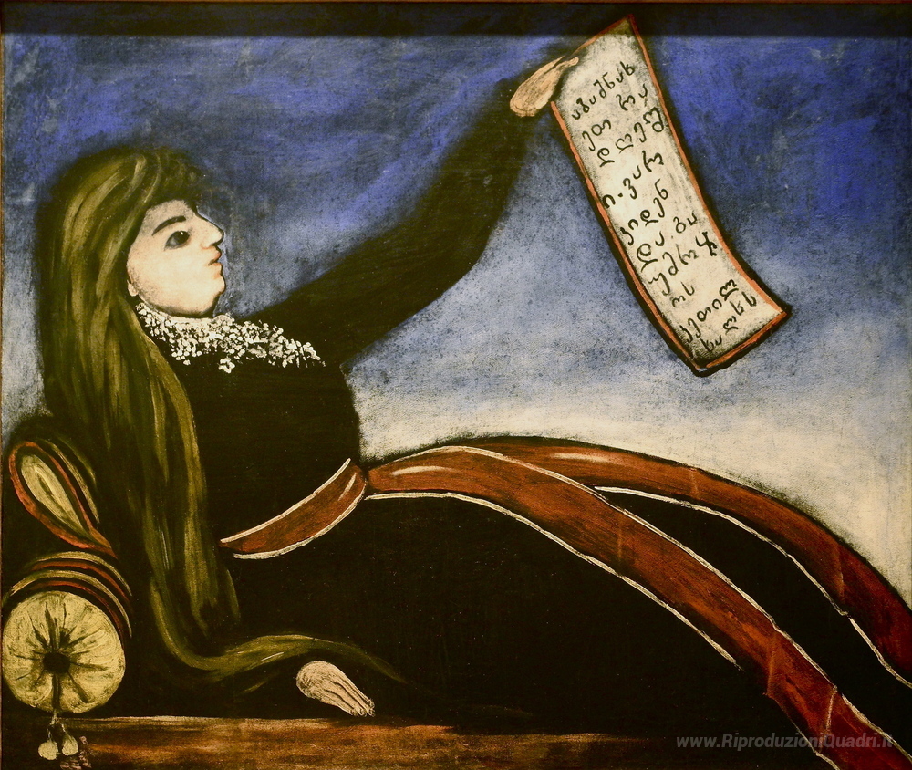 Ti offriamo una riproduzione artigianale su tela dell'opera famosa 'Donna georgiana su un divano' di Niko Pirosmani, dal Museo delle Riproduzioni.