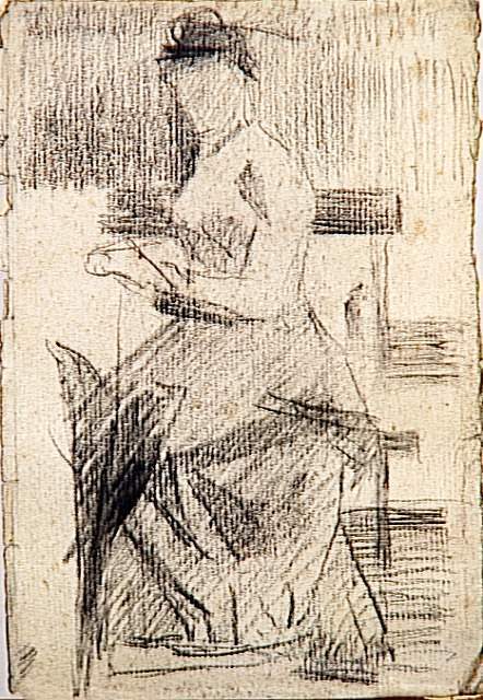 Ti offriamo una riproduzione artigianale su tela dell'opera famosa 'Donna seduta' di Georges Seurat, dal Museo delle Riproduzioni.