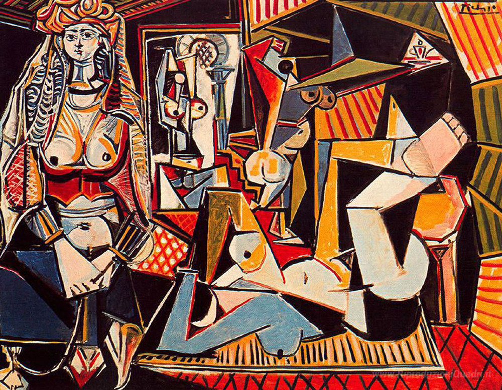 Ti offriamo una riproduzione artigianale su tela dell'opera famosa 'Donne algerine (Delacroix)' di Pablo Picasso, dal Museo delle Riproduzioni.