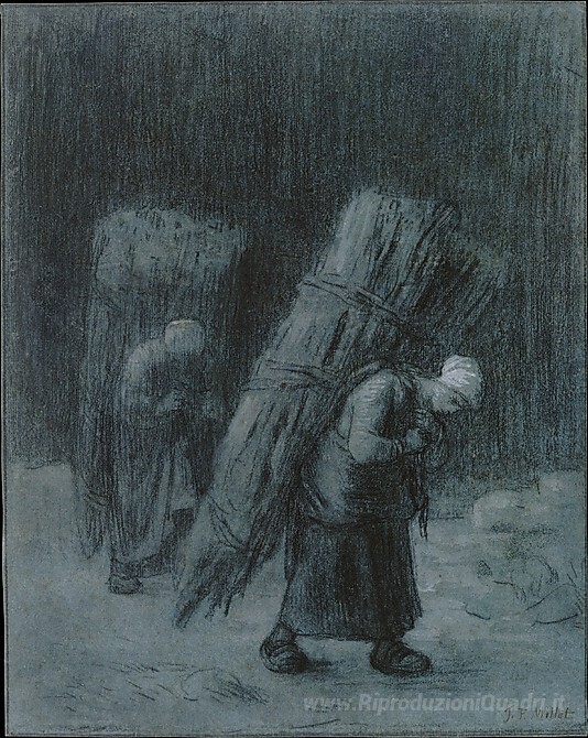 Ti offriamo una riproduzione artigianale su tela dell'opera famosa 'Donne che trasportano Faggots' di Jean-Francois Millet, dal Museo delle Riproduzioni.