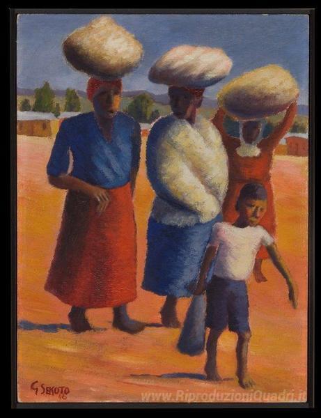 Ti offriamo una riproduzione artigianale su tela dell'opera famosa 'DONNE E BAMBINI, EASTWOOD, PRETORIA' di Gerard Sekoto, dal Museo delle Riproduzioni.