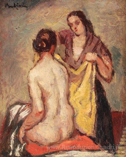 Ti offriamo una riproduzione artigianale su tela dell'opera famosa 'Dopo Bath' di Adam Baltatu, dal Museo delle Riproduzioni.