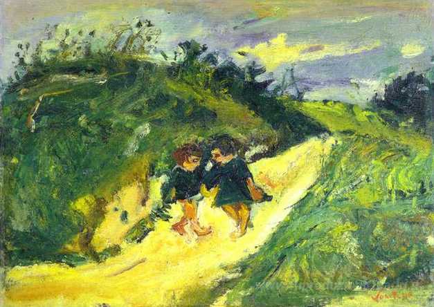 Ti offriamo una riproduzione artigianale su tela dell'opera famosa 'Due bambini su una strada' di Chaim Soutine, dal Museo delle Riproduzioni.
