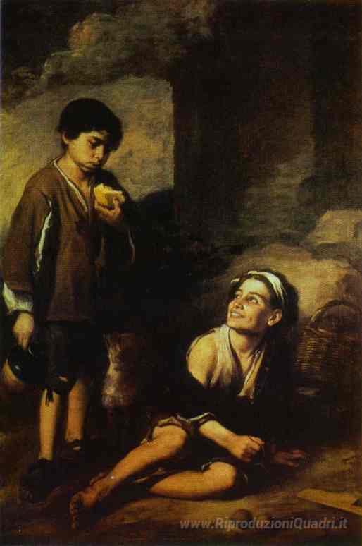 Ti offriamo una riproduzione artigianale su tela dell'opera famosa 'Due contadini Ragazzi' di Bartolome Esteban Murillo, dal Museo delle Riproduzioni.