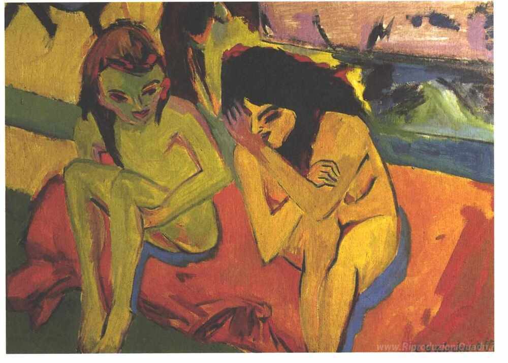 Ti offriamo una riproduzione artigianale su tela dell'opera famosa 'Due ragazze' di Ernst Ludwig Kirchner, dal Museo delle Riproduzioni.