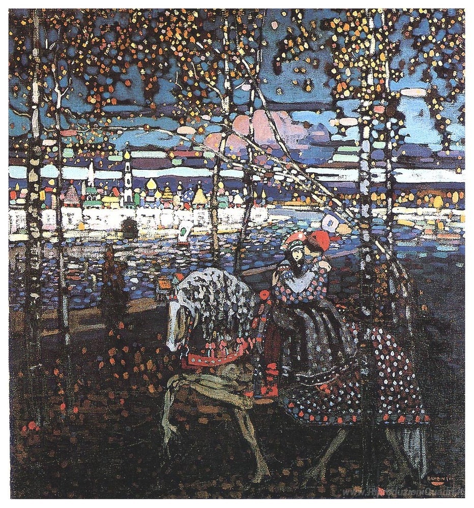 Ti offriamo una riproduzione artigianale su tela dell'opera famosa 'Equitazione coppia' di Wassily Kandinsky, dal Museo delle Riproduzioni.