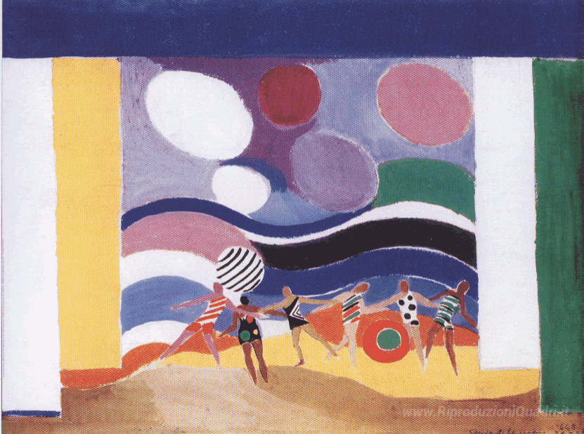 Ti offriamo una riproduzione artigianale su tela dell'opera famosa 'Estate Progetto' di Sonia Delaunay, dal Museo delle Riproduzioni.