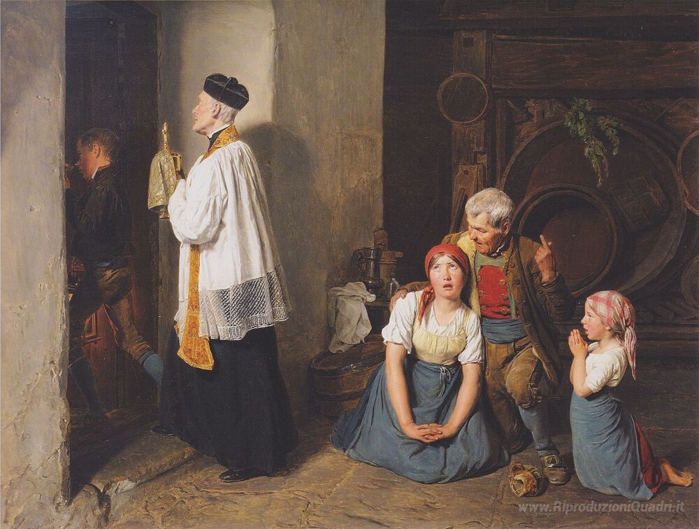 Ti offriamo una riproduzione artigianale su tela dell'opera famosa 'Estrema Unzione' di Ferdinand Georg Waldmüller, dal Museo delle Riproduzioni.